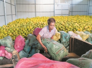2024-11-0810月31日,在鹿寨县鹿寨镇大河村六谷屯的柚子园里,金黄的柚子挂满枝头,果香四溢。记者沿着崎岖的山路来到此处看到,果园负责人林勇和工人们趁着天气晴好抢收柚子。因果园位于山上,工人们要爬坡采收,...