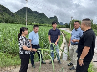 2024-07-08华制糖公司农务技术人员在“甘蔗上山”示范点查看甘蔗长势。 唐荣斌/摄 夏日,大化瑶族自治县江南乡带林村那马屯被绿色包围,原本撂荒的坡地成了绿油油的蔗海。这里是广西糖业集团达华制糖公司“...