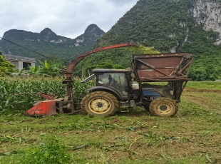 2024-06-24大新:青贮玉米迎丰收 集体经济稳增收 近日,在宝圩乡板六村青贮玉米种植基地内,大型青贮玉米收割机正在田间来回穿梭,将整株玉米一起收割、粉碎、装车,轰鸣的机器声奏响丰收序曲。 今年来,...
