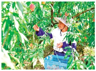 2024-06-04果农潘艳娥在采摘水蜜桃。 (记者李忠波 通讯员秦榛 刘胜 文/摄)时下,龙胜各族自治县瓢里镇瓢里村的水蜜桃迎来了丰收季。红彤彤的果实挂满枝头,果农忙着采摘鲜桃上市销售,群山间一派果满枝头的丰...