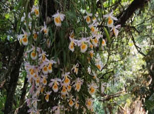 2024-05-13最美的风景不一定在远方,有时候就在自己院子里。4-5月份正值石斛花开的季节,近日笔者走进那岭乡那岭社区新永四队,被农户家门口一大片龙眼树上的石斛花吸引到了。 石斛不仅药用价值高,经济价...