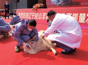 2024-05-08技术工人在剪绒现场演示剪绒技术 “绒山羊养殖让我们摘掉了贫困帽子!”辽宁省盖州市万福镇苇塘村李兆忠高兴地说,...
