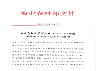 2023-12-20日前,农业农村部公布了2022—2023年度平安渔业创建示范名单,汉阴县名列其中,被认定为2022—2023年度全国平安渔业示范县,成为全省唯一新增示范县。 ...