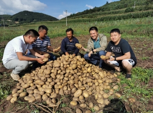 2021-09-17雪山镇法地村柳用洪村民收获的黔芋8号 刘军林 摄 眼下,正值马铃薯收获的季节,走进威宁自治县雪山镇马铃薯种植基地里,只见村民们正在忙着收获马铃薯,田间地头呈现出一派繁忙的丰收景象,处...
