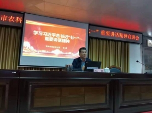 2021-11-052021年11月2日上午,玉林市农业农村局副局长杨勇到市农业科学院专题宣讲习近平总书记“七一”重要讲话精神。玉林市农科院党委书记、院长古彪主持宣讲会,市农科院全体干部职工参会。 在宣讲报告会...
