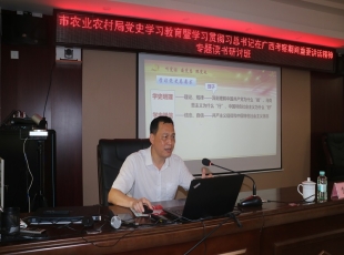 2021-09-172021年5月19日上午,为期4天的市农业农村局党史学习教育暨学习贯彻习近平总书记在广西考察期间重要讲话精神专题读书研讨班开班。此次专题读书研讨班通过学习党的十九届五中全会精神、习近平总书...