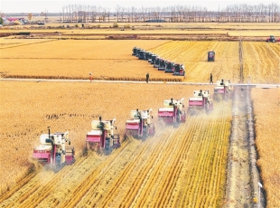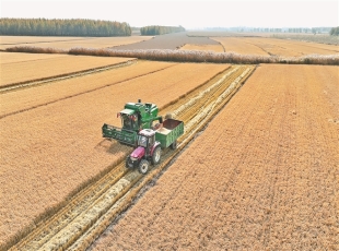 记者 郭俊峰摄 金秋时节,在佳木斯市桦川县玉成现代农机专业合作社的稻田上,智慧农机依次排开在金黄的稻田里进行收割作业,机械的轰鸣声与唰唰的割稻子声混合在一起奏响了丰收曲。 今年,桦...