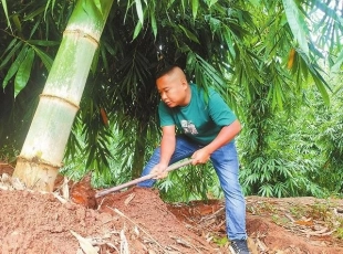 2024-09-26临翔马台冒尖的竹笋。 骤雨初歇,临沧市临翔区马台乡唐家村村民李有龙就背着竹篓、拿着锄头来到了竹林中。刨土、采挖、覆土……擦净笋上的泥,一颗颗洁白鲜嫩的竹笋就装进了筐。李有龙是临翔元荣甜竹笋种...
