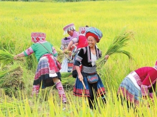 2024-09-26开镰割稻 正值秋分,走进位于红河哈尼族彝族自治州个旧市卡房镇苟街村委会对门村民小组,上千亩的旱地优质稻陆续进入成熟期,漫山遍野的金色稻穗在风中舞动掀起阵阵稻浪。农户和农技人员正抢抓晴好天气进...