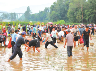 2025-09-28游客在稻田里捉鱼。通讯员 唐啟荣 摄 9月20日,2025年农民丰收节暨“菜根潭”品牌助农系列活动在昆明市东川区乌龙镇开幕。活动集农事体验、美食品鉴、文艺展演与助农销售于一体,吸引数千名村民...