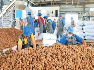 2024-06-18漾濞核桃产业园区里工人在分拣核桃干果。 走进大理白族自治州漾濞彝族自治县核桃产业园区,隆隆的机器轰鸣声中,核桃油香味扑鼻而来。在这里,一颗颗小核桃经过剥壳、压榨、精炼、灌装等数道工序后,成为...