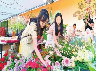 2024-06-12端阳花市期间,市民购买花草。 传统花卉、中草药集市及国际商贸展精彩纷呈;保山小粒咖啡主题展、南红玛瑙展、乡镇特色展、本地摄影作品展等文艺文化展演活动轮番上演……近日,2024年云南保山端阳花...